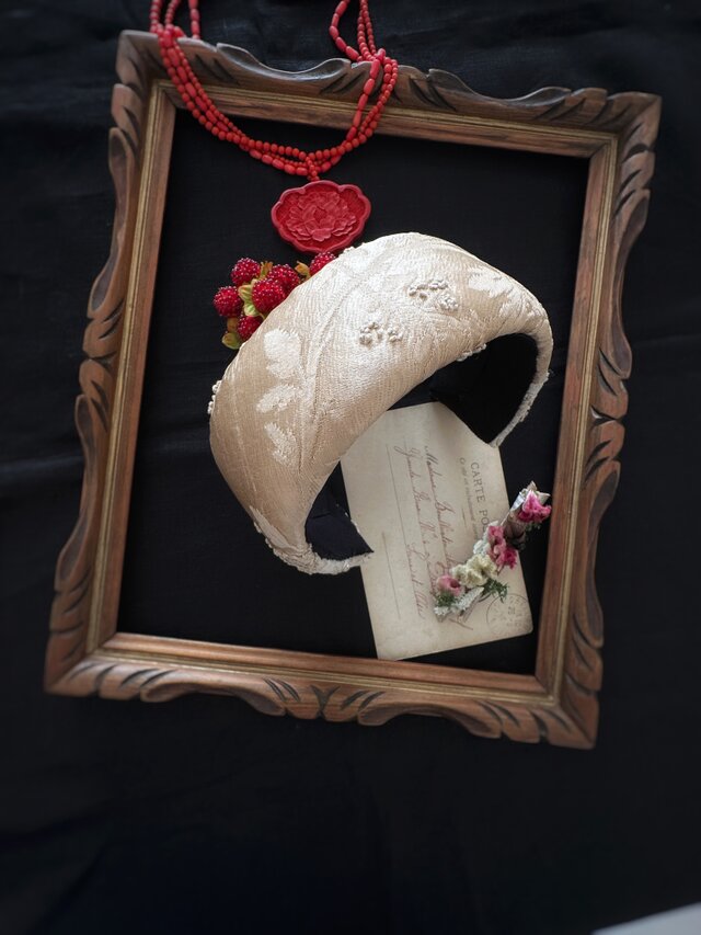 フランスのヴィンテージ布を使って仕立てたヘッドドレスです。
