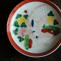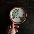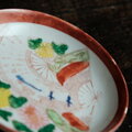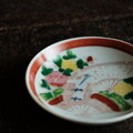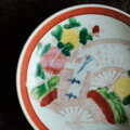 花と扇子◆カラフルな色合い。時代物 赤絵印判小皿 antiques 骨董器 丁寧な暮らし。大正時代