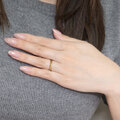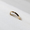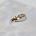 リング全体に施された滑らかな鏡面仕上げは光を美しく反射させ、仕上げに施したゴールドのメッキコーティングは柔らかく上品な色味で肌馴染みが良く、すっきりと削ぎ落とされた三角のフォルムのデザインと素材感を最大限に引き立てます。