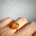 こちらのオパールは、透明感のあるオレンジの地色の中に鮮やかな赤や緑の遊色が浮かび上がります。