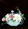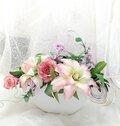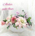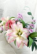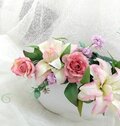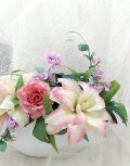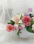 ☆クレイフラワー作品(バスケットいっぱいの夏)☆本日、自然な感じでイメージ通りの愛らしいバラのリースが届きました、さっそく壁に飾らしていただきます。 T.S