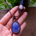 ラピスラズリ(アフガニスタン産)・ムーンストーン(スリランカ産)マクラメ編みペンダント 男女兼用可アクセサリー ギフト 3654