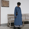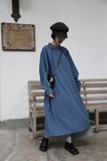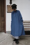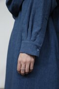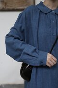 大人の上品な可愛らしさを演出 丸襟ワンピース ロングワンピース リネンワンピース 青 250918-1