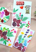 消しゴムはんこ「松ぼっくり・コットンフラワー・もみじ・イチョウ・年賀状・ポチ袋」18個