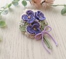レース編み パンジーの小さなブーケのブローチ~violet~