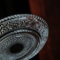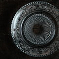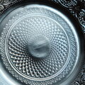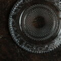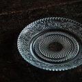 素敵な形状◆インドネシア産 プレスガラス波縁五寸中皿 丁寧な暮らし 花唐草 クリア