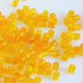 透明の山吹色のようなオレンジがかった黄色の円柱形で四角い通し穴になっています。