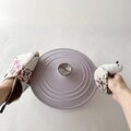 鳥さんの下側(お鍋などに直接触れる箇所)は、汚れが目立たないようベージュのリネンを使用しています。