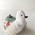 しっぽから口ばしにかけて手縫いで丁寧に縫い合わせ、コロンと愛らしいフォルムに仕上がりました。