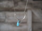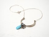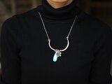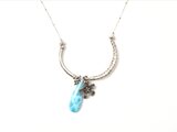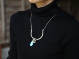 雫型の美しいラリマーに個性的で存在感のあるシルバーパーツを組み合わせ、一際目を引く大物ネックレスに仕立てました。