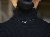 アイビーズとパイライトを黒色の細紐に散りばめ、抜け感のある8の字チャームをトップに、、