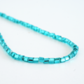 シルバーラインのビューグルビーズで円柱形、四角い通し穴になっています。