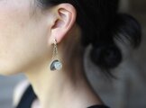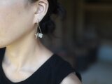 大判シルバーとリビアングラスを吊り下げたポストピアス