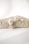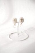砂のように小さな1mm弱のアンティークビーズを一針一針丁寧に刺繍を施したピアスです。少し霧がかかった様なスモークホワイトの色合いでどこか神秘的な印象を醸し出しています。