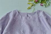 リネン100%贅沢総刺繍ポケット付きシンプルな大人可愛い五分袖ワンピース♪ -