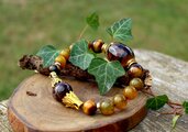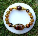 中心に30ミリx18ミリのオーバルドラゴンヴェインアゲート、12ミリのタイガーズアイ、10ミリのドラゴンヴェインアゲート、10ミリのタイガーズアイ、最後に14ミリのオーラライトを組ませました。