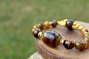 ドラゴンヴェインアゲート、タイガーズアイ、オーラライト グラウンディング力、直感力、洞察力、霊性を高めるドラゴンブレスレット