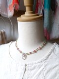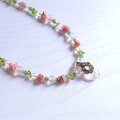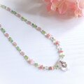 使用パーツ:ローズクォーツ ピンクアゲート グリーンアベンチュリン ペリドット 水晶 ロードクロサイト プラムクォーツ コーティングワイヤー メッキ金具