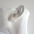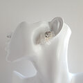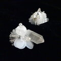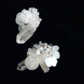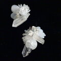 氷柱水晶と球体の天然石、ビーズ刺繍を組合わせて作った立体的なモザイク模様の耳飾り。