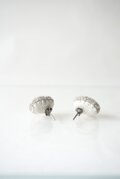 砂のように小さな1mm弱のアンティークのガラスビーズを一針一針丁寧に刺繍を施したピアスです。少し霧がかかった様なスモークホワイトの色合いでどこか神秘的な印象を醸し出しています。