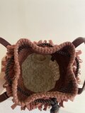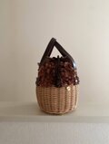 籐カゴと、かぎ針編みで編んだフリルのコントラストが美しい、メッグバッグマルシェ。