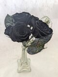 プリザーブドフラワーの黒薔薇5輪とグリーンを添えたシンプルな花束。