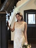 時を重ねたレースに散りばめられたビーズは優しく煌めき、ポイントにあしらったヴィンテージクリスタルが上品な華やかさを添えます。