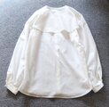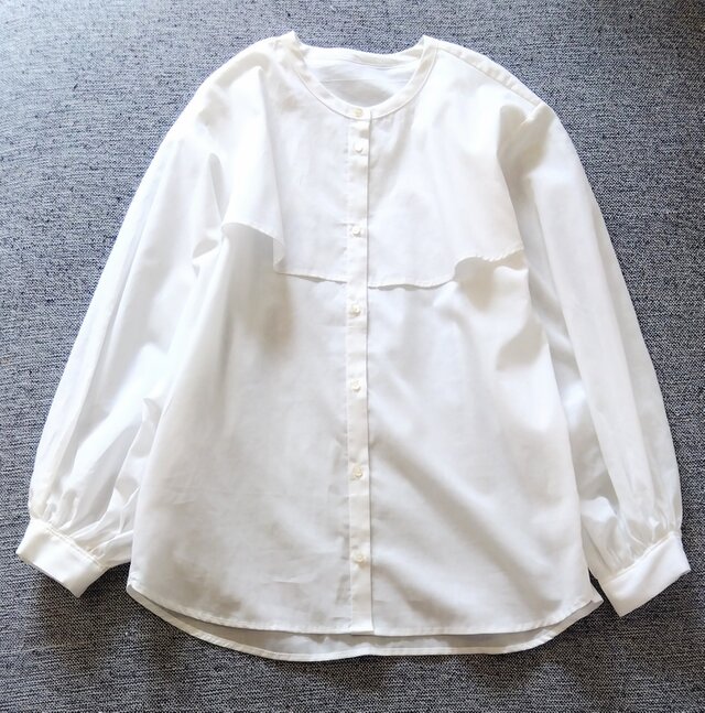 トレンチコートに見られるアンブレラヨーク(雨よけ)のデザインを取り入れたブラウスです。