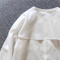 ボタンやステッチが可愛いです。ベルトも抜けたり偏ったりのストレスがなく、袖もスナップボタンを留めたままと外した時の雰囲気が変わり、よく考えられたデザインです。明るい生成色ですが、ふっくらしているので秋も楽しめそうです。ありがとうございました!