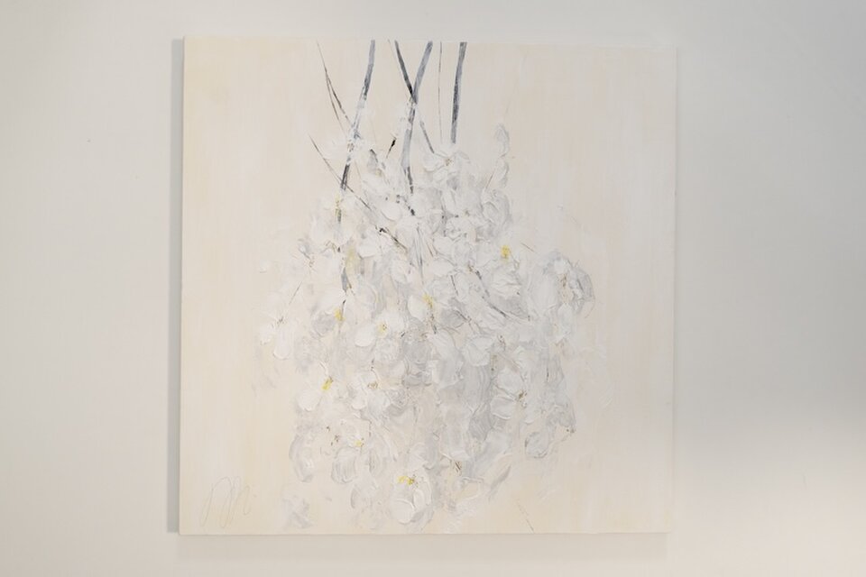 白い花を抽象的に美しく描いた作品。淡い雰囲気がとても美しいです。