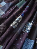 以前から、気になって拝見してましたが、今回思いきって購入させて頂きました。ウエストサイズ調整ありがとうございます。一つ一つのパッチワークが丁寧で、大事に着たいです。少し派手かなとも思いましたが、色々な彩度の布の集合体なので、グレー、ベージュ、茶等、色々あててみましたが、楽しく組み合わせられそうです。