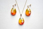 色合いは夕焼けを思わせるノスタルジックなイエローとオレンジのグラデーション。鮮やかな色の移り変わりが美しいアクセサリーです。