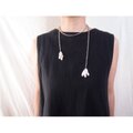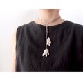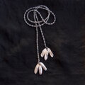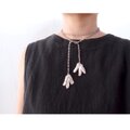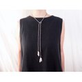 タッセルのようなフェザーパールが揺れるグレーのラリエット。