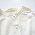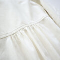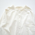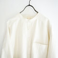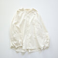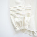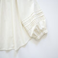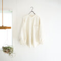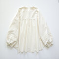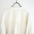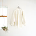 2way tuck & gather blouse (white/linen)ホワイトのブラウスであまり、特長が無いように見えるけれど、ボタンのつけかたに変化をもたせ、デザインに工夫されたところが、よかった。