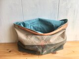 薄茶色とカーキ色の、洗い加工を施してある8号帆布を使いました。とても手触りのよい、くたっとした感じです。