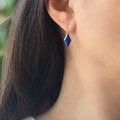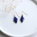 上品なネイビーブルーが印象的な天然石ラピスラズリを、ダイヤカットで仕上げた一粒ピアス。シンプルながら存在感のあるデザインです。大人っぽい色は、幅広いシーンで活躍。