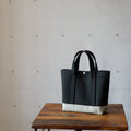 シックな杢グレーとブラックの組み合わせが、洗練された印象を与えるトートバッグです。普段使いからお出かけまで、上品なアクセントとして活躍します。