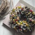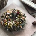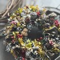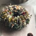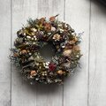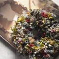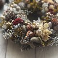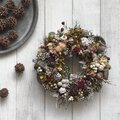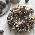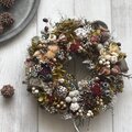 所々に忍ばせて落ち着いた色合いのリースになりました。