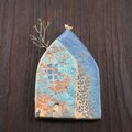 小鳥が屋根にとまったおうちの壁掛けです。風合の異なるシルエットの重なりは奥行のある雰囲気です。