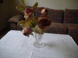 白いバラとカーネーション、菫、マーガレット繊細な布のカットに優しい色の染め方でコサージュには ぴったりの布花ですね。 まいかい 感激しています。 ありがとうございました。たいせつにします。