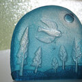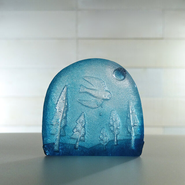 絵本の中の世界をガラスに閉じ込めたような 蒼い月夜の森のオブジェです。