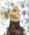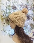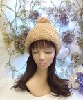 ニット帽 ビーニー ワッチキャップ ポンポン付き きな粉ベージュ