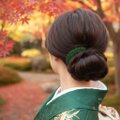 こっくりとした深緑色は、秋の装いに特におすすめです。 赤やオレンジ、黄金色といった秋色の着物や帯に合わせると、この深緑が全体をグッと引き締め、美しいコントラストを生み出します。