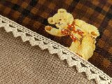 ブラウンのチェック柄に、小さなテディベアたちがちょこんと並んだほっこりデザインの生地で作りました。