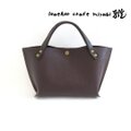 ◎ダークブラウンの細かいシボ目のボディにさらに濃い目のスムースブラウンのハンドルを合わせてカフェオレブラウンのステッチでアクセントを付けました♪