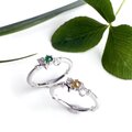 キリッとしたグリーンを引き立てるように両サイドのダイヤモンドが2石、華を添えています
