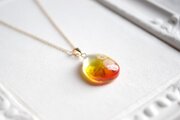 ドロップ型のレジンにお花を二輪咲かせた可憐なペンダントです。