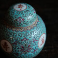 空間が映えること間違いなしの素敵な中国産の色絵蓋付壺になります。
