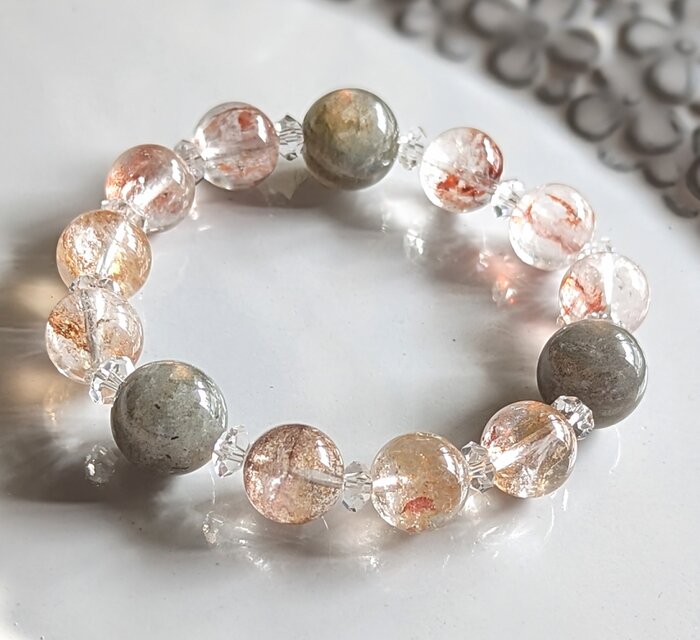 『ピンクラブラドライト&リモナイトインクォーツ&クリアクォーツのブレスレット』
