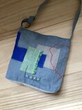 リネンのコラージュと刺し子のショルダーバッグ